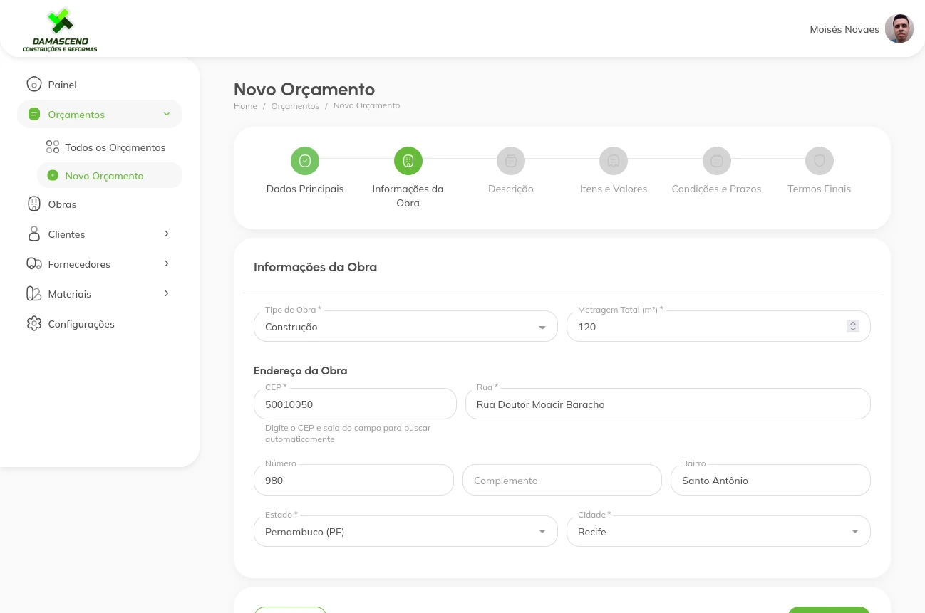 A empresa realizava a gestão de obras através de planilhas e processos manuais, o que dificultava o acompanhamento dos projetos e o controle financeiro. Precisavam de um sistema centralizado.